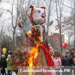 Жгли очередное чучело Масленицы (на этот раз – в красном) пятигорчане уже вечером.